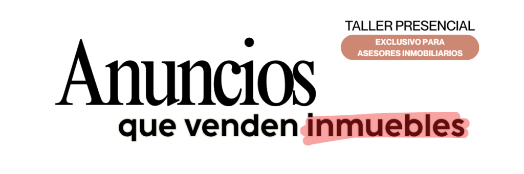Anuncios que venden Inmuebles ✓ Taller presencial ✓ Matriz de contenido infinito ✓ Acceso 30 días a grupo privado ✓ Revisión semanal de anuncios ✓ Material + ejercicios
